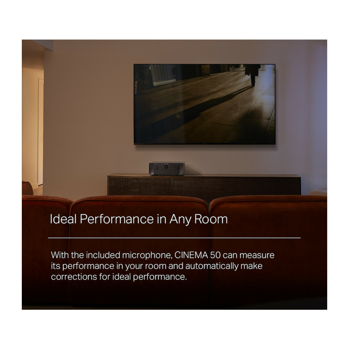 The CINEMA 50 is a powerful AV receiver for very high- performance home theaters featuring premium 9.4 channel 110-watt-per-channel amplification with Dolby Atmos, DTS:X, IMAX Enhanced and Auro 3D, 8K Ultra HD, and HEOS® Built-in streaming.