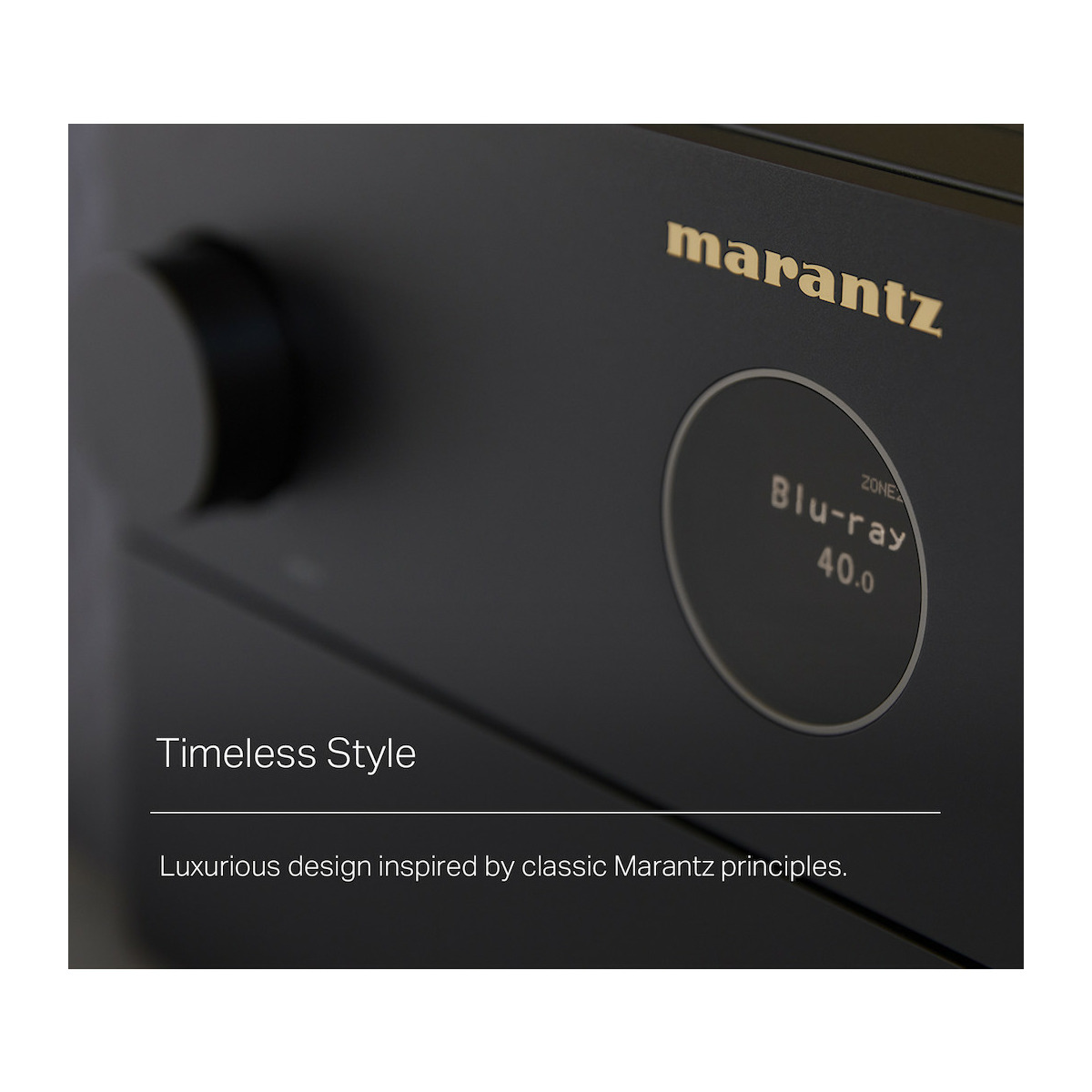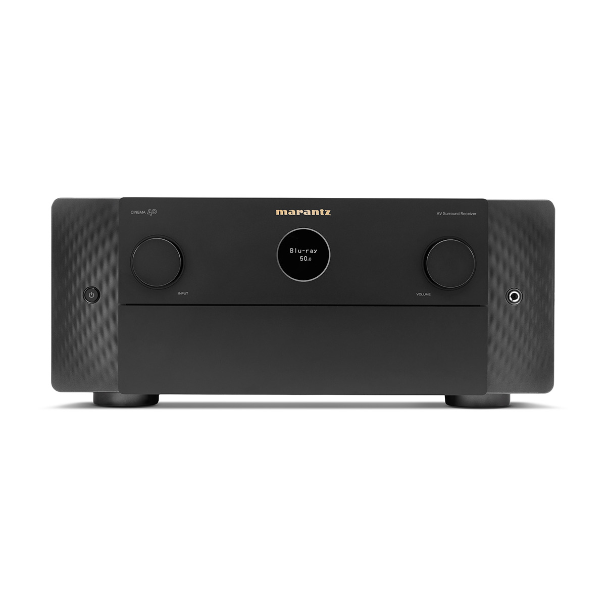 Premium 9.4 channel 125-watts-per-channel amplification, Dolby Atmos, DTS:X Auro 3D, and 8K Ultra HD plus HEOS® Built-in streaming; the Marantz CINEMA 40 is a statement piece and reference level A/V Receiver.