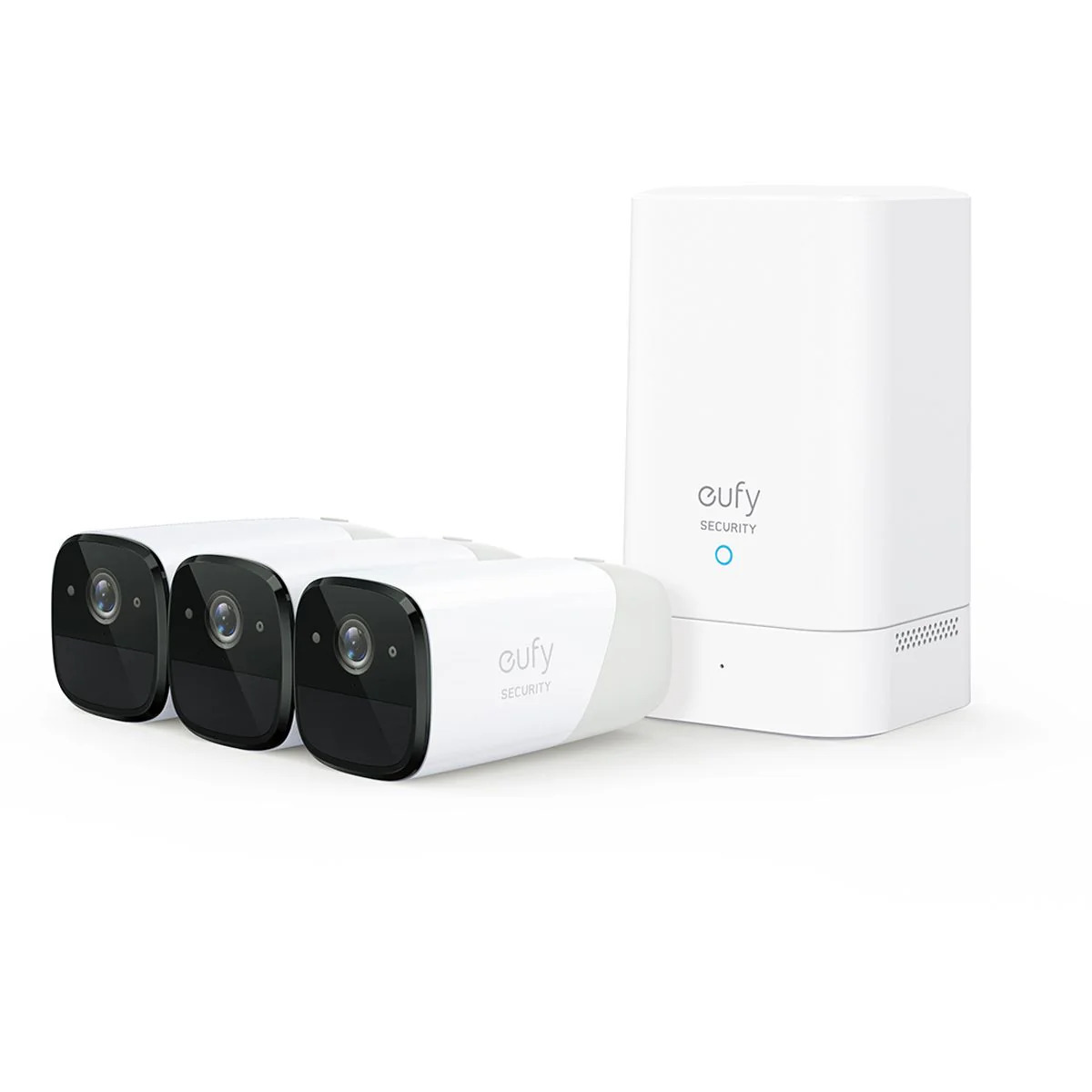 - What’s Included: 3 x eufyCam 2 Pro Cameras, HomeBase 2 with UPS, 3 x Screw Mount, 3 x Magnetic Mount, Micro USB Charging Cable, AC Power Adapter, Ethernet Cable, User Manual, Screw Pack.