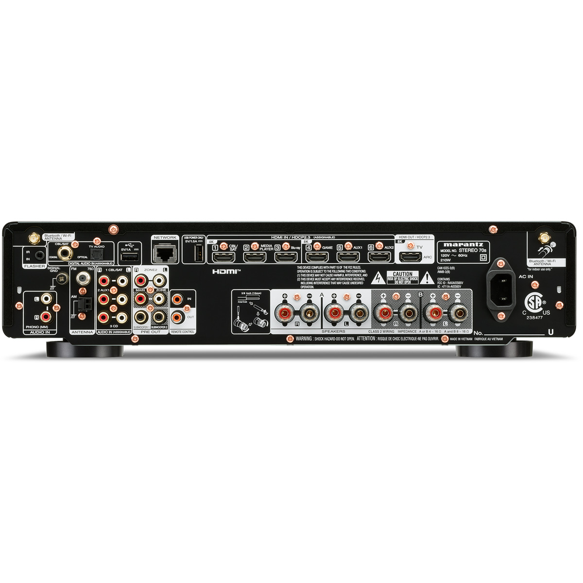 • 75 watt per channel Marantz Class A/B amplifier drives speakers with confidence, clarity, and tonality