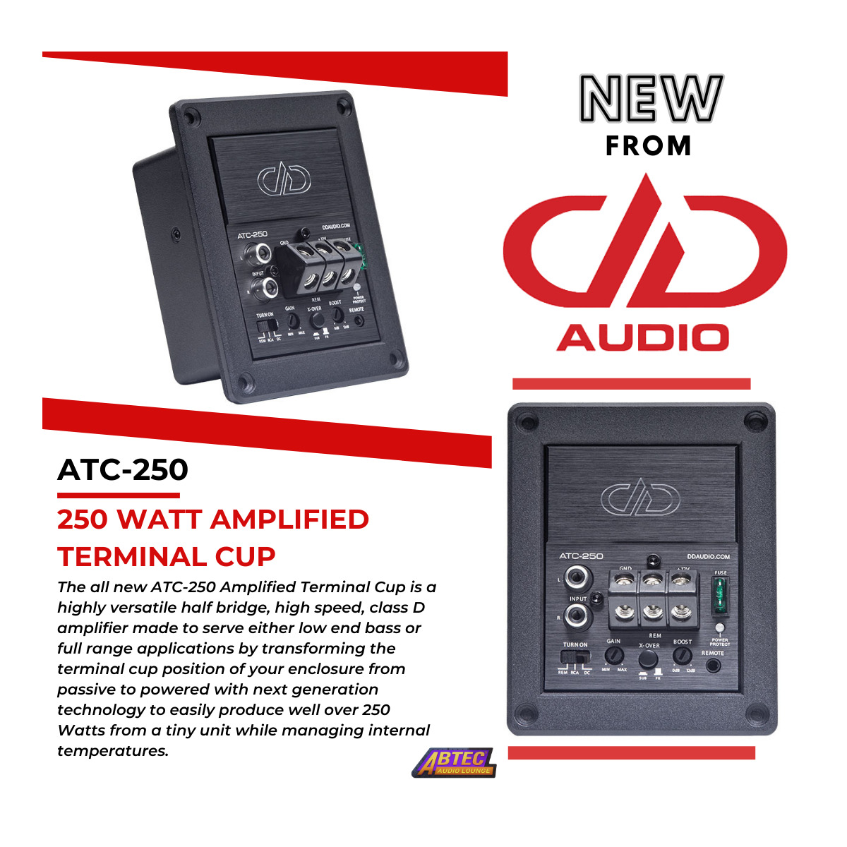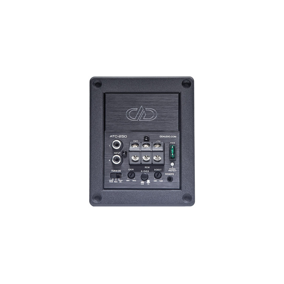 The ATC-250 from DD Audio is a 1-channel amplifier specifically designed as a replacement for the original terminal of the DD Audio LE series enclosures. With easy installation and a remote switch that supports both REM and RCA settings, the amplifier offers flexibility and user comfort. The ATC-250 features two crossovers: a SUB setting for frequencies from 30-80 Hz and a FR setting for frequencies from 80 Hz to 25 KHz.