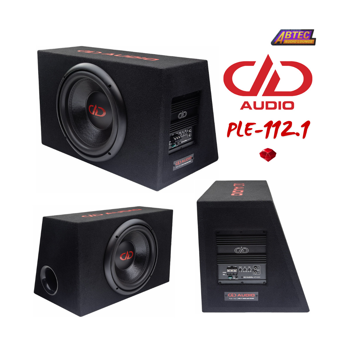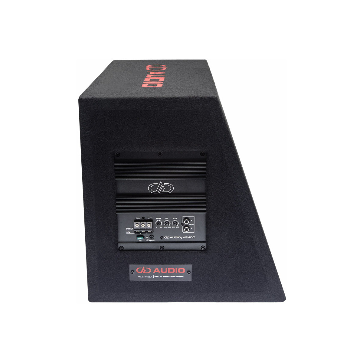 The PLE-112.1 is the plug and play active subwoofer of your dreams. The precision tuned enclosure is made from 18mm MDF, incorporates a flared port, and is finished in black carpet with DD Audio embroidery. The 100 Series, 12” subwoofer features a high strength, high excursion motor with a rigid, non-pressed pulp cone for tight controlled bass response. The amplifier is a compact 400w RMS integrated monoblock using discrete outputs on a traditional DD style heat sink to ensure long-term cool running. It also comes with a remote control, allowing you to adjust the balance of your sound palette on the fly.
