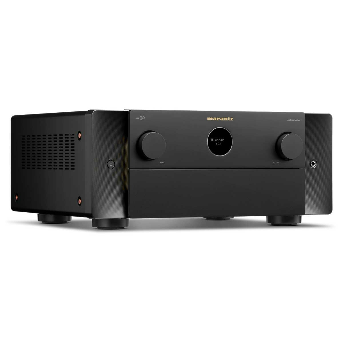 A modern expression of timeless design principles, AV 30 features the iconic Marantz porthole, premium materials, and subtle sidelights that illuminate the front panel.