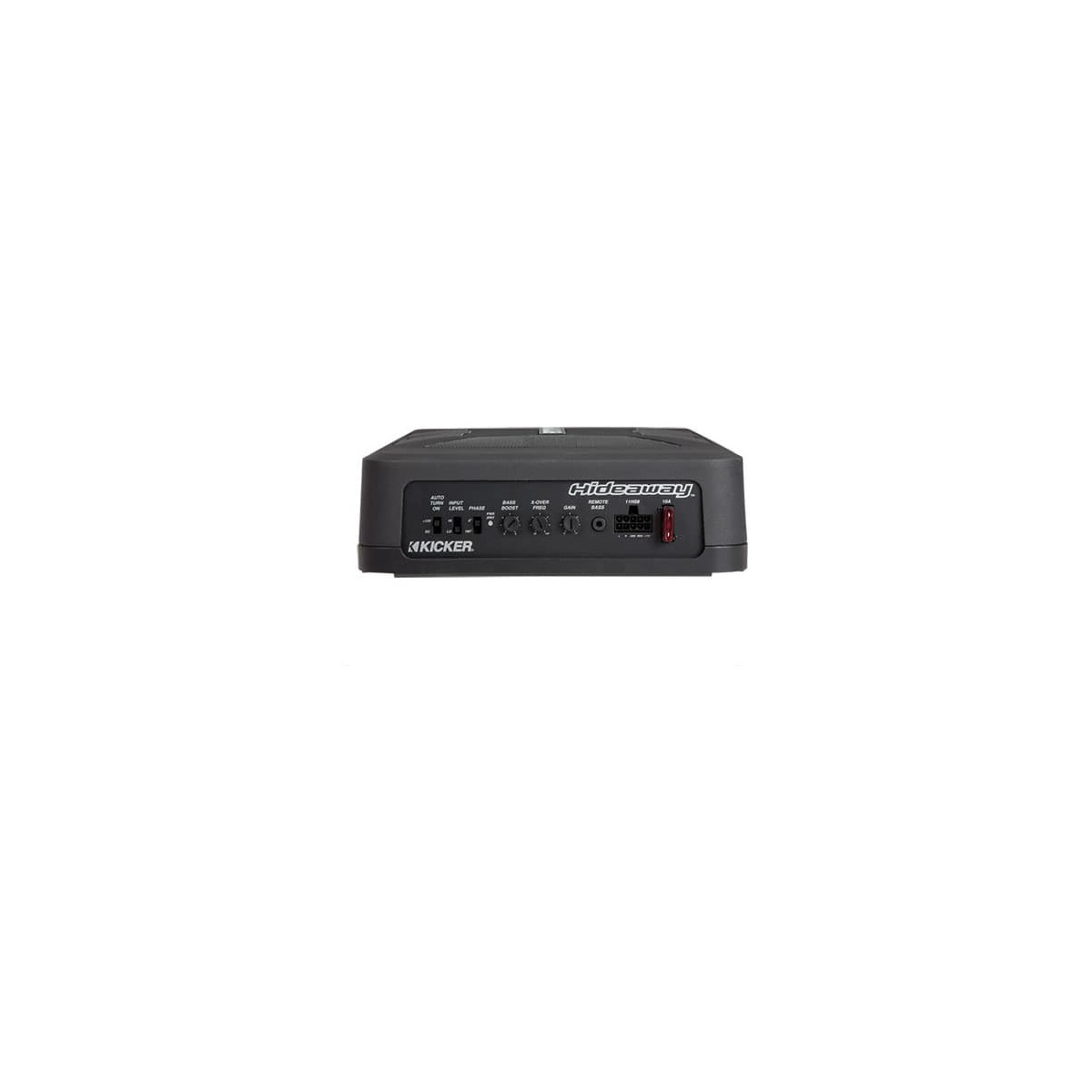 The KICKER Hideaway Compact Powered Subwoofer delivers impressive low-frequency output from an exceptionally small enclosure, setting a new benchmark in plug-and-play bass performance and in-car convenience. Measuring just over three inches high and nearly 14 inches long, the Hideaway combines a 150-watt amplifier with an 8-inch subwoofer to bring powerful bass to any vehicle, even in the tightest spaces. It also features a quick-connect power plug and Velcro-secured nylon straps for safe installation and easy, fast removal.