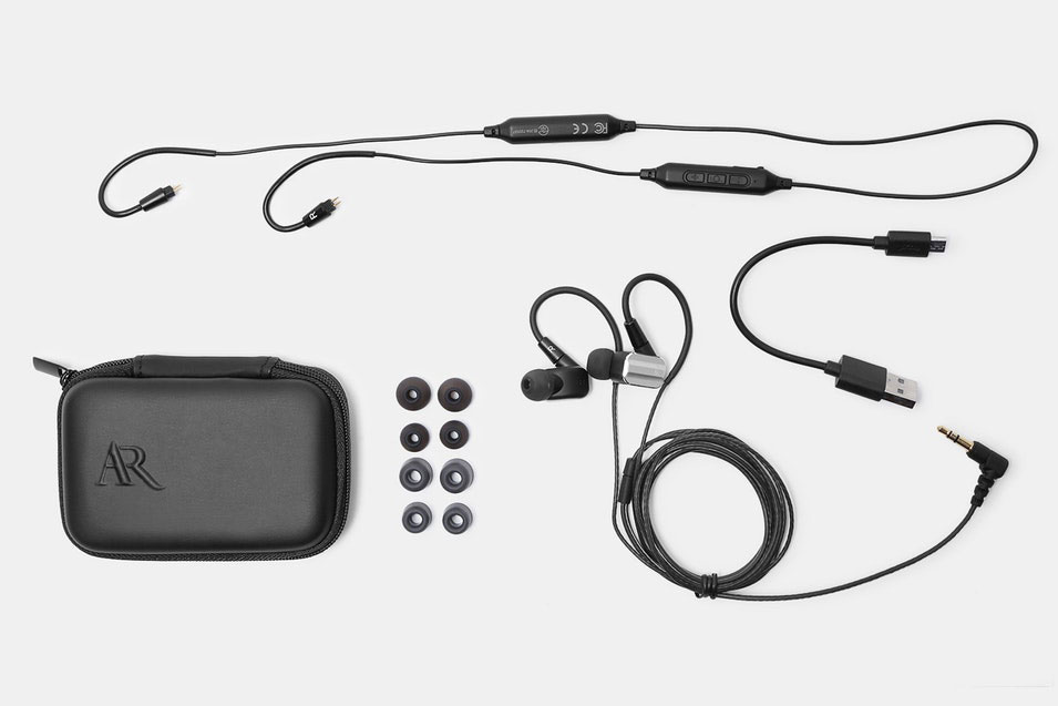 Overview Acoustic Research High Fidelity's first two universal in-ear monitors (IEM) are serious, audiophile-grade offerings that are designed to satisfy the most demanding music lovers and gamers. AR spared no expense in designing IEMs that are a match for the company's acclaimed over-ear model, with top-shelf audiophile grade components that add up to an unmatched sonic experience at any price, let alone such affordable models. The AR E10 features a hybrid acoustic module made up of an 8mm Beryllium dynamic driver and a proprietary balanced armature driver, with the result being a life-like performance, especially when paired with a hi-res. audio player like the Acoustic ResearchM2, M20, and M200. The E10 comes packed and ready to go with a wide range of accessories, including a 2-pin, interchangeable cable interface, both a 1.2m unbalanced audio cable (3.5mm 3-pole) and a 1.2m balanced audio cable (4.4mm 5-pole), a Bluetooth AptX neckband, replaceable earphone sleeves, and a carry pouch for easy storage and portability. Top it off with a shape that fits comfortably for hours of listening without fatigue, and it becomes clear that Acoustic Research High Fidelity's in-ear monitors are the new high standard in IEM design and performance.