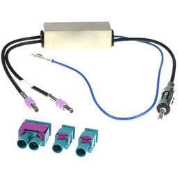 Some vehicles are fitted with a specific style of antenna plug, this can make upgrading to an aftermarket headunit a bit tricky. Aerpro antenna adapters simply plug into the vehicles specific antenna plug and convert it to a standard plug (DIN) which is suitable for most aftermarket headunits. Features -Converts Vehicle Antenna Plug to DIN Plug -Suits Most Aftermarket Headunits -Plug and Play Installation -Suitable for Both AM and FM Radio -Utilises Both Antennas Fitted to Vehicle (Dual Diversity) -Includes Both Combined and Separate Plugs -Antenna Amplifier Trigger Wire Vehicles known to work with this product -Volkswagen Amarok 2011-2015 -Volkswagen EOS 2007- -Volkswagen Golf 2009-2013 MK6 -Volkswagen Jetta 2006-2015 -Volkswagen Passat 2006-2015 -Volkswagen Touareg 2004-2010 -Volkswagen Tiguan 2008-2014 -Volkswagen Transporter T5 2010-2015 -Volkswagen Passat 2006-2012 (wagon) -Volkswagen Golf 2004-2009 MK5 -Peugeot 308 2008-2014 T7 -Skoda Octavia 2007-2013 -Skoda Yeti 2011-2014 -Volkswagen Beetle 2012- -Audi A1 2011- (8X) -Volkswagen Golf 2013- MK7 -Volkswagen Polo 2010-2014 -Volkswagen Polo 2015- -Volkswagen Polo 2006-2009 -Volkswagen Transporter T6 2016- -Volkswagen Tiguan 2015- -Landrover Range Rover 2011- Evoque -Porsche 911 2004-2008 (997) -Porsche Boxster/Cayman 2004-2009 (987) -Volkswagen Caddy 2005-2015 -Volkswagen Caddy 2015- -Skoda Supurb 2009-2015