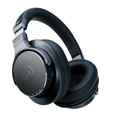 Pure Digital Drive™ system Ultra-comfortable, soft, memory foam earpads and headband Internal battery provides approximately 15 hours of continuous use on a full charge. Overview The ATH-DSR7BT over-ear wireless headphones gift your ears with Digital Sound Reality. These innovative headphones feature Audio-Technica’s new Pure Digital Drive™ system, allowing them to operate without the sound-degrading D/A converter found in conventional wireless headphones. By utilizing Trigence Semiconductor’s Dnote chipset, the ATH-DSR7BT headphones are capable of receiving a Bluetooth wireless transmission, processing the digital audio signal and transferring it to the drivers where the digital pulses of the chipset move the voice coil and diaphragm forward and backward to create the sound waves heard by the listener. Key Features -Exclusive Pure Digital Drive™ system keeps audio signal completely digital from source to driver for exceptionally pure sound -Dnote chipset controls driver amplitude directly with digital signals – no D/A converter required -Compatible with Qualcomm aptX HD, aptX, AAC and SBC codecs, enabling wireless transmission with a resolution up to 24-bit/48kHz -Exclusive 45 mm True Motion Drivers, featuring bobbin-wound voice coil, top-mounted printed circuit board and specially designed diaphragm, provide rich, detailed audio reproduction -Housing’s dual-layer isolation structure keeps the electric circuitry separate from the acoustic space for optimal phase and transient response -Acoustic resistor controls airflow inside the diaphragm housing to yield a natural sound -Mic and volume/control switch are built into the earcup for convenient control of smartphones and other Bluetooth wireless devices -NFC (Near Field Communication) functionality enables touch pairing with NFC-compatible Bluetooth wireless technology devices -Remembers the last eight Bluetooth wireless devices paired -LED indicators in the earcup display pairing and charging status, battery level, and the codec currently in use -Ultra-comfortable, soft, memory foam earpads and headband -Internal battery provides approximately 15 hours of continuous use (1000 hours on standby) on a full charge -Includes a 2.0 m USB cable, for charging and Hi-Res Audio playback, and a carrying pouch