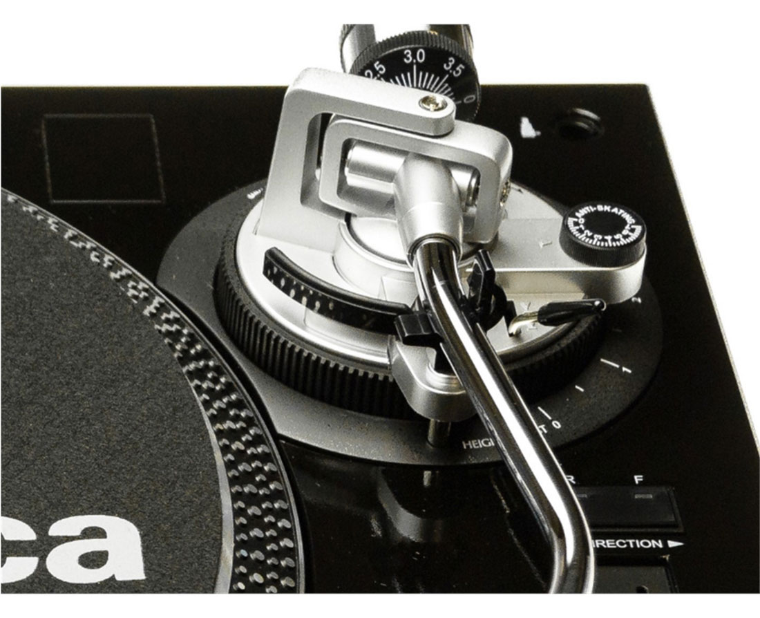 This professional stereo turntable features a high-torque direct-drive motor for quick start-ups and a USB output that connects directly to your computer. Other features include: forward and reverse play capability; cast aluminum platter with slip mat and a start/stop button; three speeds 33/45/78; selectable high-accuracy quartz-controlled pitch lock and pitch change slider control with +/-10% or +/-20% adjustment ranges; and removable hinged dust cover. A selectable internal stereo phono pre-amplifier allows the turntable to plug directly to components with no dedicated turntable input. A USB cable and adapter cables are included along with Mac- and PC-compatible Audacity software to digitize your LPs. -Type 3-speed, fully manual operation -Motor DC motor -Drive Method Direct Drive Direct drive -Speeds 33-1/3 RPM, 45 RPM, 78 RPM -Pitch Variation +/-10% or +/-20% -Turntable Platter Die-cast aluminum -Starting Torque >1.6 kgf-cm -Braking System Electronic brake -Wow and Flutter <0.2% WRMS (33 RPM) -Signal-to-Noise Ratio >50 dB -Output Level Pre-amp "PHONO": 2.5 mV nominal at 1 kHz, 5 cm/sec -Pre-amp "LINE": 150 mV nominal at 1 kHz, 5 cm/sec -Phono Pre-Amp Gain 36 dB nominal, RIAA equalized -USB Function A/D, D/A - 16 bit 44.1 kHz or 48 kHz USB selectable; -Computer interface - USB 1.1 Compliant Windows XP, Vista or MAC OSX -Power Supply Requirements 115/230V AC, 60/50 Hz -Power Consumption 11W -Dimensions 450.0 mm (17.72") W x 352.0 mm (13.86") D x 157.0 mm (6.1") H -Weight 10.7 kg (23.5 lbs.) -Accessories Included Headshell/cartridge; AC line cord; dual RCA (female) to 3.5 mm (1/8") mini-plug (male) stereo adapter cable; dual RCA (female) to 3.5 mm (1/8") mini-plug (female) stereo adapter cable; 45 RPM adapter; USB cable; recording software