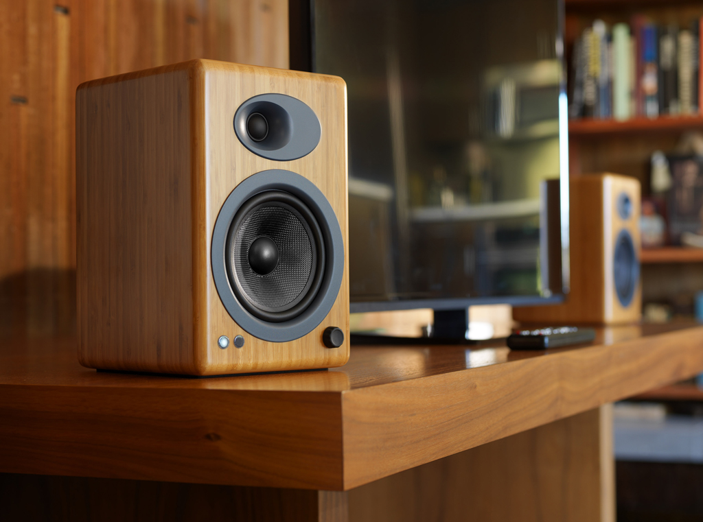 Audioengine 5+ (A5+) Premium Powered Speakers deliver audiophile-quality sound and features at a price that continues to set the standard for affordable high-quality audio. Connect your iDevice, computer, TV, or any other audio component for great stereo sound in any room. Affordable Audio The goal of Audioengine is to provide a high-end listening experience at affordable prices with easy to use, high-quality products. The Audioengine 5 powered speaker system was Audioengine's flagship model and has become a best seller. The new A5+ has the same award-winning signature sound as the original A5 but includes customer-requested upgrades and features. Versatile With custom Kevlar woofers, silk dome tweeters, and hand-built cabinets, the Audioengine 5+ includes a remote control, dual audio inputs and enhanced thermal management. You can charge your iDevice via the USB power port and also add a subwoofer to the variable output. Connect Audioengine 5+ to your computer's headphone jack or pair with a USB DAC to achieve an even higher level of sound quality. The Audioengine 5+ works with any computer and there's no software to install or settings to change. Easy Setup Built-in power amplifiers save space and eliminate the need to connect Audioengine 5+ to a stereo receiver or external power amp. Simply plug the left speaker into an AC outlet and connect the included speaker wire from the left to right speaker. All internal components of the A5+ are tuned together, providing a more efficient system requiring less power than passive speakers and amplifiers. With superior stereo separation and incredible imaging, A5+ has a clear sonic advantage over boomboxes or all-in-one systems. Small Speakers, Big Bass You won't hear any enhanced super-mega-hyper-monster boomy bass from these powered speakers. As with the original A5, the low end from the A5+ is real bass, very near to the originally-recorded music. From rap to classical to movies, you'll get tight, punchy bass with an awesome growl that will make you smile - regardless of the volume level. Hear the Difference The Audioengine 5+ Premium Powered Speaker System delivers the audio performance and aesthetic quality expected from Audioengine and continues to close the gap between your computer music and home hi-fi. Even if you're not an audio enthusiast we guarantee your music will sound better!