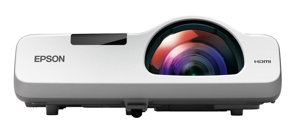 Epson EB-520 short throw projectors provide ultra-bright image quality up to 2,700 lumens both in high colour brightness and in white brightness with 3LCD, 3-chip technology. The EB-520 short throw projectors are ideal for delivering large and engaging presentation content in the classroom or office without having the restriction of space. The EB-520 also features a newly developed high precision short throw lens with greater sharpness and improved focus levels. The long lasting lamp, projecting up to 10,000 lamp hours in ECO mode gives an extended period of reliable performance. Suitable for desktop use with convenient table top placement or using the optional wall mount (ELP-MB45), the EB-520 short throw offers flexible installation in any environment. KEY FEATURES & BENEFITS - 3 x Brighter Colours and reliable performance – 3LCD, 3-Chip Technology. Look for both high colour brightness and high white brightness. - Crisp Clear Resolution – Featuring XGA image resolution (4:3). - Large and engaging presentations, even in small spaces – Project large images from short distances with minimal shadows and glare. - Long Lasting lamp, low-cost lamp maintenance – Up to 10,000 hours in ECO mode. - Versatile Connectivity – Easily integrate with any system using HDMI and the optional Epson Control box (ELP-CB02). - Convenient collaboration for BYOD classrooms – Wirelessly share and compare students’ work from multiple devices, simultaneously, with EasyMP® software / Multi-PC Projection functions WHAT'S IN THE BOX - Epson EB-5201.8m Computer Cable - 4.5m power cable Remote Control - Batteries x 2 - Projector Software Ver. 1.02b (CD ROM) - Password Protect Sticker - Manual TECHNOLOGY - Projection System Epson 3LCD, 3-chip technology - LCD Panel 0.55-inch with MLA (D8) OPTICAL Zoom 1 - 1.35 (Digital Zoom) Screen Size 37" to 108" Projection Distance 82" screen 0.91m Throw Ratio 0.55 (Zoom: Wide), 0.74 (Zoom: Tele) Projection Lens F Number 1.60 Projection Lens Focal Length 6.4mm Focus Method Manual Focus Offset 12.8:1 IMAGE - Colour Light Output 2,700 Lumens - White Light Output 2,700 Lumens - Resolution XGA - Native Aspect Ratio 4:3 - Contrast Ratio 16,000:1 - Lamp Hours Normal/Eco: 5,000/10,000 Hours - Lamp Type 200 W UHE - Keystone Correction Vertical: -15 to +15 degrees - Horizontal: -15 to +15 degrees CONNECTIVITY - Input: Video 1 x RCA (Yellow), 1 x S-Video, 2 x Component (via D-sub 15-pin) - Input: Computer 2 x D-sub 15-Pin (RGB), 1 x USB 2.0 type B - Input: USB Memory Device USB Type A Ver.2.0 - Input: Three-In-One USB Display 1 x USB 2.0 type B - Input: Digital 1 x HDMI - Input: Audio 1 x RCA (Red/White), 2 x Stereo mini jack - Input: Control 1 x USB 2.0 type B, RS232C - Input: Epson USB Document Camera 1 x USB 2.0 type B - Network I/O: RJ45 x 1 (100Mbps) - Wireless Connectivity Optional Accessory (ELP-AP07) - Output: Video D-sub 15 pin (black molding) - Output: Audio Stereo mini jack x 1 - Speaker Output 16W ADVANCED FEATURES - EasyMP Network & Control Yes - EasyMP Network Projection Yes - PC Free Presentations Photo / Motion JPEG - USB Plug 'n Play Yes - AV Mute Slide Yes - Instant Off Yes - Direct Power On/Off Yes - Security Kensington®-style lock provision - Padlock - Security cable hole - Password protect function - Colour Modes Dynamic, Theatre, GENERAL - Dimensions D x W x H (excluding feet) 314.5 x 344 x 94 mm - Weight 3.7kg - Lamp Warranty 12 months or 750 hours* - Projector Warranty 3 Years - Power Consumption: Lamp on Normal: 278W / Eco: 219W - Power Consumption: Standby 0.28W (communication off) - Noise Level Normal/Eco 35/28dB