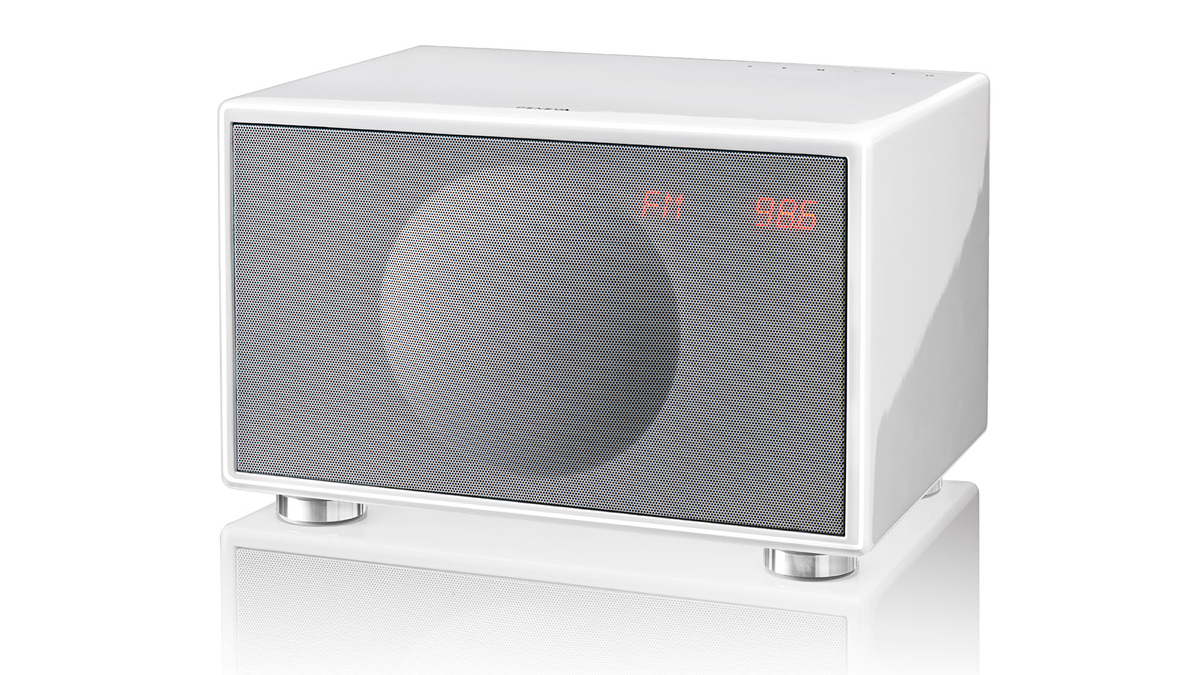 Hi-Fi sound meets high style Once you’ve seen and heard it, it’s easy to understand why it’s won so many awards. The Classic/ M blends superior Hi-Fi sound with fine Swiss engineering, making it the perfect speaker system for any passionate music lover. To mark its 10-year anniversary, we’ve redesigned the inside to make the listening experience even better: enjoy pristine audio quality that competes with much bigger systems, as well as cutting-edge Bluetooth, DAB+, FM, and alarm clock functions. Specifications SOURCES -Bluetooth 4.1 A2DP compatible -DAB+ and FM tuner with 6 stations presets -3.5 mm jack AUDIO input AUDIO -2 x 1" tweeters. 2 x 4" woofers -Dual cavity full stereo with Embracing Sound processing -Digital Audio Processing unit with proprietary algorithms -48Hz - 20 kHz -analog Class AB amplifiers CONTROLS -On device touch controls -Remote control -Digital clock with alarm function POWER CONSUMPTION -Power supply: 100-240V AC, 50/60Hz -Standby power consumption: less than 0.5W DIMENSIONS -Width x depth x height: 30.1 cm x 22 cm x 18.1 cm -Weight: 5.8 kg COLORS -Glossy red -Glossy white -1Glossy black -Walnut wood ACCESSORIES -AC power cable -Remote control -Antenna -Metal feet with soft rubber edges -Optional brushed aluminum stand