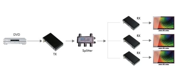 LENKENG HDMI Extender over Coaxial RG6 Cable Kit. Kit includes 1 x TX and 1 x RX. Solution can support one TX to multi RX or Multi RX to multi TX. ***Coax runs shorter than 100M Require 20dB Attentators This product is designed to convert HDMI signal to HD digital TV signal based on DVB-T CATV transmission mode. Being different from traditional analogue CATV signal, it uses 64QAM mode to realise the HD signal to HD digital TV signal conversion and transmit via coaxial cable for long distance. With the advantages of good image quality, strong resistance to interface and hundreds of channels available, it can be widely applied in CCTV, outer large screen, shopping mall advertisement, media education and digital KVM fields etc Power Supply 5V 1A. DC Support Input Resolution 480i@60Hz, 480p@60Hz, 576i@50Hz, 576p@50Hz, 720p@50/60Hz, 1080i@50/60Hz, 1080p@50/60Hz Support Output Resolution 480i@60Hz, 480p@60Hz, 576i@50Hz, 576p@50Hz, 720p@50/60Hz, 1080i@50/60Hz, 1080p@50/60Hz Supports HDMI Graphics Resolution Up to 1920 x 1080@60Hz Video Encoding H.264 Audio Encoding MPEG2 Coaxial Cable RG6, RG7, RG11 etc Frequency Point 100-1000MHz Effective Bit Rate Max 31.6M bits Insertion Loss <2dBm RF TX Output Consumption +0dBm RF Connector Imperial System (75Ω Type F) Transmission Delay 500ms Power Consumption Tx: <3.5W: Rx:<3W Product Dimension (LxWxH) 130 x 68 x 24mm