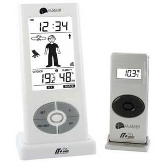 The La Crosse WS9620 Weather Boy Weather Station is a very neat weather forecasting system that can measure, process and display an assortment of weather information. Brand new from La Crosse Technology, this innovative weather station is perfect for viewing weather conditions at a glance and features the weather boy character, which assists in day to day forecasting by constantly changing his clothes to indicate what is happening outside, accordingly to the pressure and temperature variations recorded by the weather station. 15 Different symbols such as scarf, umbrella, sunglasses and changing expressions As well as the weather boy character this compact weather station has many other features including a barometric pressure tendency arrow, forecasting icons (clouds, rain, sun, etc), based on changing barometric pressure and monitors indoor and outdoor temperature. The La Crosse WS9620 Weather Boy weather station also uses the new state of the art wireless transmission technology (Instant Transmission), exclusively designed by La Crosse Technology. This offers you an immediate update of all your outdoor data measured from the transmitters, meaning you can view any weather or climatic changes in real time.