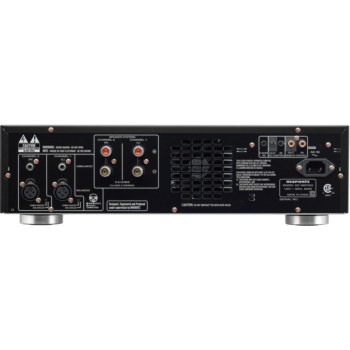 Marantz Sound Quality The Marantz Amplifier MM7025s advanced technology serves all your listening needs. Current feedback circuits, also used in Marantzs Reference Series amps, insure the purest sonic reproduction regardless of source. Another MM7025 virtue, and one directly traceable to its substantial current capability, is the control it establishes over difficult speakers to reproduce both dynamic musical peaks and whispered dialog without blemish.