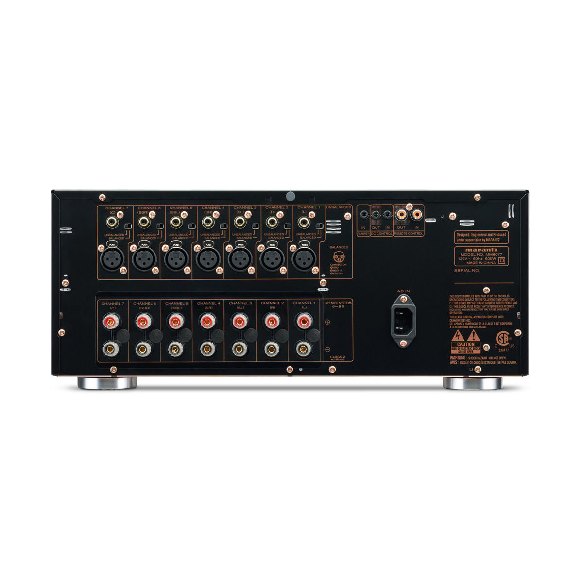 Designed for the ultimate music and movie surround sound experience, the Marantz MM8077 7-channel power amplifier delivers power and detail, and is rated at 150 watts per channel into 8 ohms, and 180 watts per channel into 6 ohms.