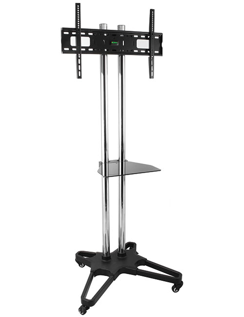 - Stylish solid steel base with heavy duty braked castors - Height adjustable TV mount for perfect viewing height - Cable management - Adjustable 5mm tempered glass shelf for AV components - Fits most 37-70" screens with Vesa up to 600x400 - Max load: 70kgs - Dims: 1810 x 686 x 583mm