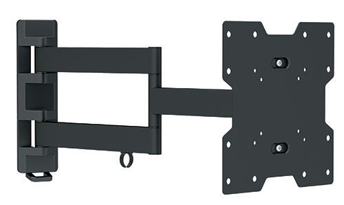 * Small size, accommodating panels from 23" to 40" * This mount features a 35kg maximum weight carrying capacity * 75/100/200mm VESA mounting compliant * Single stud mounting * 70-460mm extension from the wall * Cantilever mount provides +15 to -15 degrees vertical tilt and up to 180 degrees swivel adjustment * Mounting hardware is included to guarantee a hassle free install * Black powdercoat finish
