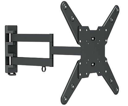 * Medium size, accommodating panels from 32" to 50" * This mount features a 35kg maximum weight carrying capacity * 75/100/200/300/400mm VESA mounting compliant * Single stud mounting * 70-460mm extension from the wall * Cantilever mount provides +15 to -15 degrees vertical tilt and up to 180 degrees swivel adjustment * Mounting hardware is included to guarantee a hassle free install * Black powdercoat finish