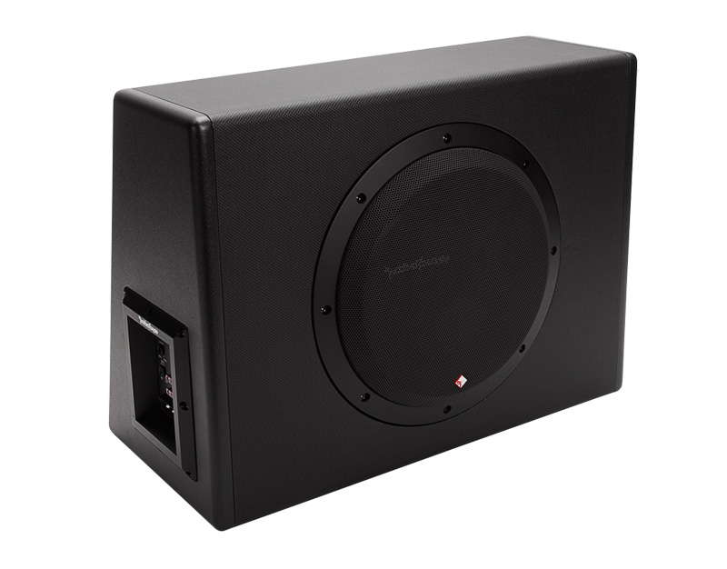 The P300-10 powered subwoofer is an all-in-one solution when adding bass to a factory system or just to save space. This model features a 10inch subwoofer in a sealed enclosure powered by an internal 300 watt amplifier. -"Closed-loop" design ensures optimum performance between woofer, amplifier and enclosure -Built-in 0°/180° phase switch -Separate low level and speaker level inputs -Built-in adjustable bass boost EQ -Adjustable 12db/Octave low pass crossover -Detachable Power/Ground connector -Intelligent auto turn on/off function -Thermal and over voltage protection -High-efficiency, low current design -Remote bass level control included -Proprietary high output woofer -Constructed with 5/8" MDF -Large AWG input terminals -Covered with industrial heat activated vinyl