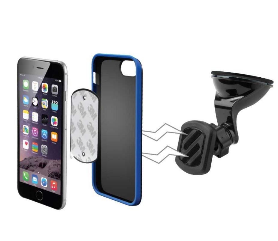 MagicMount is a new magnetic mounting system for conveniently mounting smartphones and more. Just hover your device near the magnetic surface and it instantly locks securely in place. This suction cup phone mount system is sleek and versatile. The cradle-free design uses high-powered magnets to secure your device where you use them most. Place your device at any angle for convenient viewing. On the road, at the office, at home, everywhere. Place your device at any angle for convenient viewing. On the road, at the office, at home, everywhere. Security Secure the MagicMount with the automotive-grade 3M adhesive MagicPlate Install the MagicPlate behind your case or battery cover, directly to your rugged case or directly to your device. *A larger and smaller MagicPlate is included Behind Case Behind Battery Cover Directly to Rugged Case Directly to Device Works with: -GPS -iPod* -iPhone -iPad -Smartphones -Tablets - Does not work with iPod Classic or other hard drive devices. The strong magnetic fields produced by these Neodymium magnets is enough to damage hard drive devices